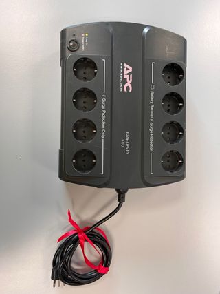 Gruppo di continuità APC Back-ups ES 400 **senza batteria** - Protezione da sovratensioni e interruzioni di corrente. - Diverse prese per collegare apparecchiature. - Indicatore di stato a LED. - Taglia: 400 VA/240 W - Alimentazione di emergenza a batteria con protezione contro le sovratensioni per computer, gaming consoles e apparati elettronici in genere - 8 uscite - 4 con backup di batteria e protezione da sovratensioni, 4 con protezione da sovratensioni - Protezione contro le sovratensioni che attraversano le linee Telefoniche / Fax / Modem (connettori RJ45, RJ11)