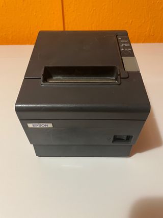 Impresora térmica Epson en color negro y gris. Ideal para negocios y puntos de venta. - Diseño compacto y moderno. - Fácil de integrar en cualquier espacio.
