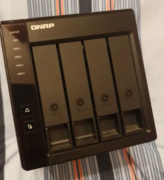 Unità di archiviazione esterna QNAP TR-004. Espansione per Nas Qnap. Utilizzabile anche come DAS via porta usb - Quattro alloggiamenti per unità. - Indicatore di stato per ogni unità. - Pulsanti di controllo frontali. - Chiavi - Alimentatore - Cavo usb - No scatola Verificate le caratteristiche sul sito qnap Perfettamente funzionante e completo di 4 hard disk Western Digital Red da 6Tb l'uno. Gli hard disk non hanno errori o settori danneggiati. Gli HD sono: 1 con data di produzione 2021, 2 del 2020 e uno del 2023.
