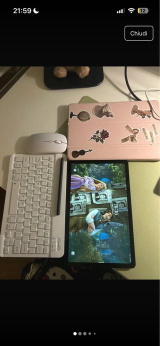 Vendo Samsung Galaxy Tab S6 Lite con S Pen e tastiera. - Schermo da 10.4 pollici. - Include pennino S Pen. - Tastiera bianca. - Mouse wireless bianco.