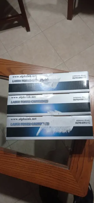 Vendo N° 3 toner nuovi per stampante laser Samsung da 1500 copie cadauno ( Vedere ultima foto con le sigle a cui si adattano). Due sono ancora sigillati mentre uno è stato aperto e utilizzato per prova (vedere foto con livello di carica)ma poi ritolto in quanto il problema era la stampante e non il toner esaurito.