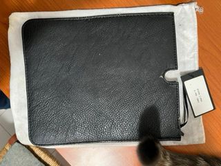 Elegante porta iPad in ecopelle nera con logo inciso. - Materiale: Ecopelle - Colore: Nero - Logo inciso - Design vintage L’ecopelle presenta i segni del tempo ma non è mai stato utilizzato e la sacca custodia ha una macchia