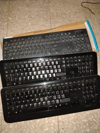 Set di tre tastiere wireless. - Tastiera Mediacom. - Tastiera Microsoft. - Tastiera generica.