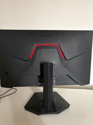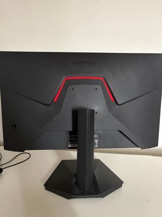 Monitor Koorui con diseño moderno y detalles en rojo. - Panel con alta tasa de refresco de 120fps. - Acabado principal en negro.