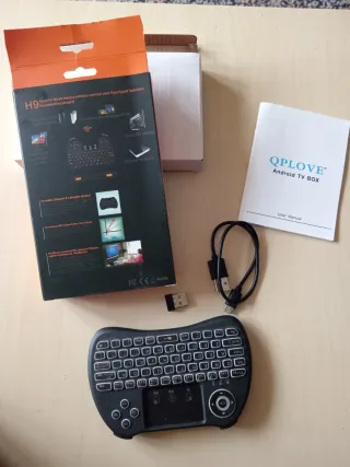 Mini tastiera H9 con funzione telecomando multimediale e touchpad. - Tastiera portatile e dal design elegante. - Ideale per PC, Smart TV e Android TV Box. - Include cavo di ricarica e ricevitore USB.