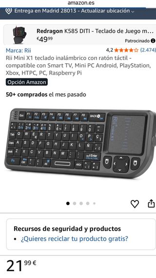 Tastiera Bluetooth con touchpad integrato, in spagnolo. - Tastiera QWERTY in spagnolo - Retroilluminato (puoi scegliere tra 7 colori) e 3 livelli di luminosità. - Compatibile con iOS (l'ho provato con il mio iPad Air e ottimo), Android, Windows. - Design compatto e portatile. - Manuale di istruzioni incluso. - Altre caratteristiche: nelle foto allegate.
