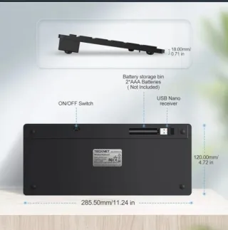 Tastiera compatta in colore nero. Design elegante e moderno. Tasti a basso profilo per una scrittura comoda. TeckNet® X315 2.4G Wireless Ultra Slim USB Mini Keyboard con layout UK e design della tastiera silenzioso per Smart TV Android. Risparmio energetico: il design a sospensione automatica di questa mini tastiera wireless consente fino a 12 mesi di utilizzo della batteria. Basato su 2 ore di utilizzo continuo al giorno. 2 pile AAA non incluse. Distanza di utilizzo di 15 m. La tecnologia wireless 2.4G fornisce una connessione senza fili per la tastiera portatile; la tastiera piatta ha un raggio di azione fino a 15 m di connettività wireless.