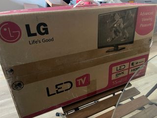 Televisore LG Full HD da 21 pollici in buono stato. Include telecomando e cavo di alimentazione. - Schermo IPS LED. - Design elegante in nero e argento. Due ingressi HDMI e un ingresso RGB. Altoparlanti integrati.