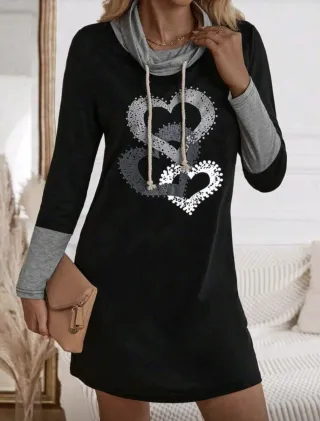 Felpa lunga con un design unico e dettagli a cuore. Il cappuccio con coulisse aggiunge un tocco casual. - Stampa a cuore decorativa. - Maniche lunghe a contrasto. - Tessuto confortevole.