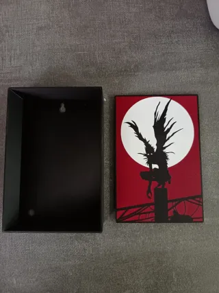 Quadro decorativo a tema Death Note, apribile, utile come porta oggetti da scrivania. Può essere appeso al muro come decorazione. - Design con Ryuk e luna. - Colori rosso, bianco e nero.