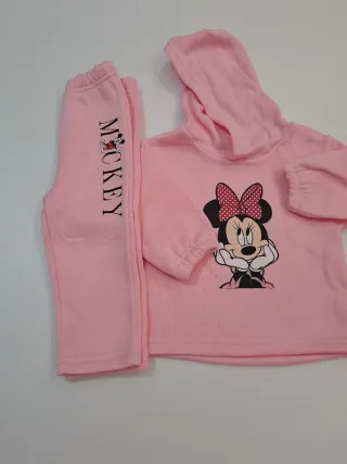 completo per bambina 12/18 mesi con stampa di Minnie in caldo tessuto rosa - Felpa con cappuccio rosa. - Pantaloni coordinati rosa. - Stampa di Minnie con fiocco a pois sulla felpa. - Scritta Minnie sui pantaloni. Per qualsiasi info non esitate a scrivermi massima serietà spedizione rapida