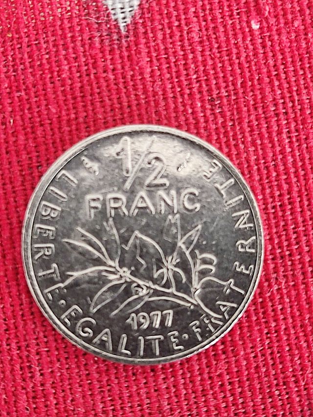 Moneta da mezzo franco francese del 1977. Raffigura un ramo fiorito. - Valore: 1/2 Franco - Anno: 1977 - Paese: Francia