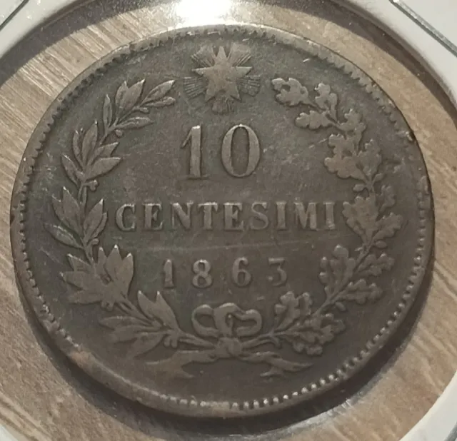 Moneta da 10 Centesimi coniata nell'anno 1863.