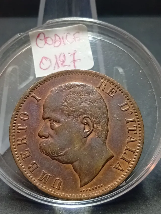 Moneta da 10 Centesimi del Regno d'Italia, coniata nel 1894. - Effigie di Re Umberto I. - Materiale: Rame Rosso 960%. - Anno: 1894. - Zecca: Birmingham (R).