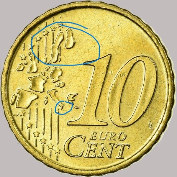 Dettagli del prodotto10 Centesimi Spagna del 1999 ERRORI DI CONIO