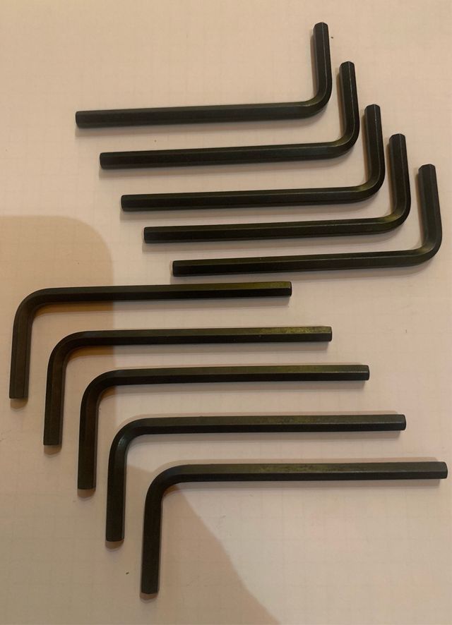 Set di dieci chiavi a brugola esagonali. - Materiale: metallo - Colore: nero - Dimensioni: 4 mm adatte per viti M.5