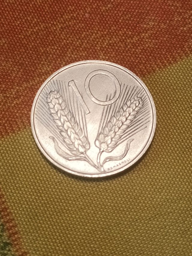 Moneta da 10 Lire del 1980. - Dritto: Due spighe di grano. - Rovescio: Il valore 10 con la scritta LIRA e ROMAGNOLI.