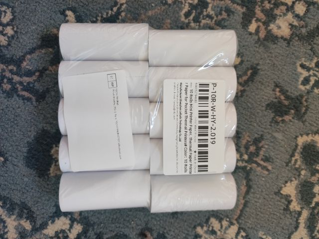 Dettagli del prodottoPacchetto di 10 rotoli di carta termica per stampanti tascabili e fotocamere termiche istantanee. I rotoli sono nuovi e sigillati nella confezione originale.