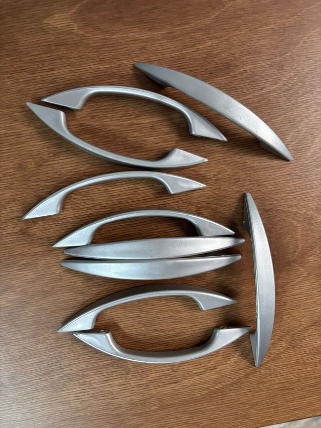 Set di dieci maniglie per mobili da cucina. - Misura tra i fori: 96mm - Materiale: Plastica. - Colore: Grigio.
