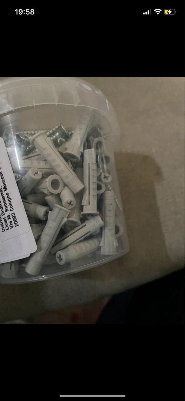 NuovoDettagli del prodottoVendo 100 tasselli per muro in plastica grigia, nuovi, con viti incluse. Perfetti per fissare oggetti a parete.