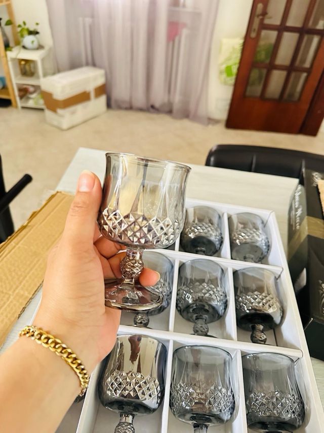 12 bicchieri cristall nero trasparente