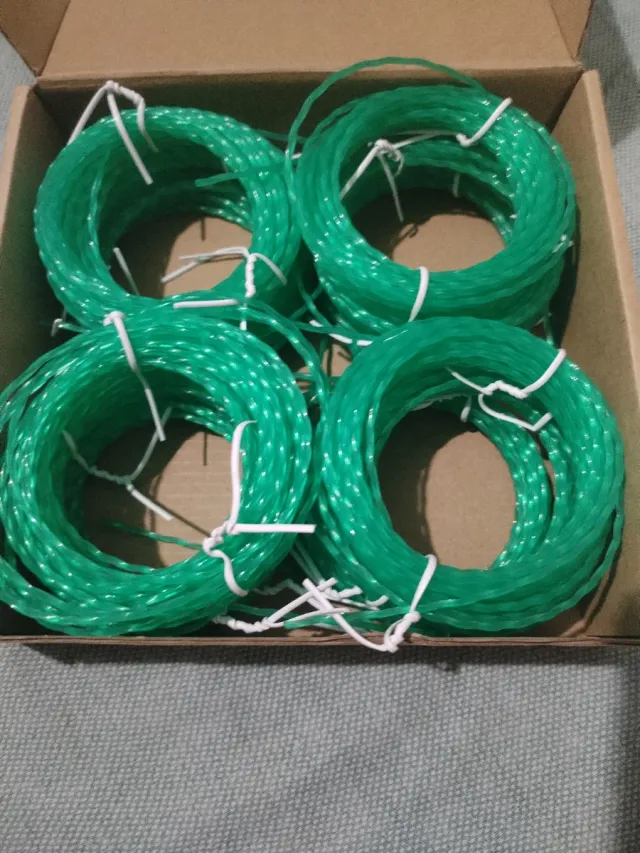 Rotoli di filo in polipropilene di colore verde, ideali per lavori di edilizia.
