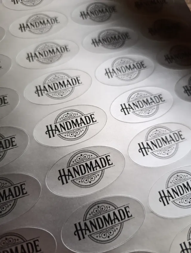 Dettagli del prodottoSet di etichette su 2 fogli ( 60 etichette per ogni foglio) in carta satinata adesive ovali colore argento opaco con la scritta Hand Made. Perfette per personalizzare i tuoi prodotti.