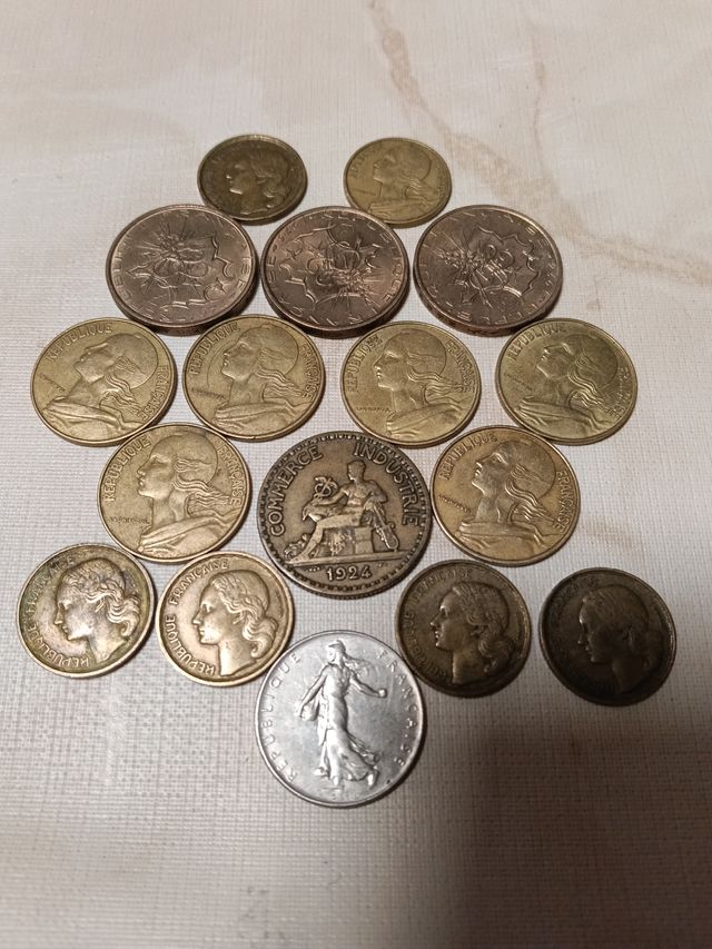 Dettagli del prodottoSet di diciassette monete francesi del XX secolo. 10 fr. Francesi Mathieu anni 1974,75,76. 6 cts fr. Francesi anni 64,67,69,63,67,71. 10 CTS fr. 1963. 10 fr. Francesi anni 52,52b,53,51b, 51b. 1 Franco francese anno 1960. 1 moneta commerce industrie 1924 BON per 3 franchi. La descrizione è stata tradotta automaticamente.