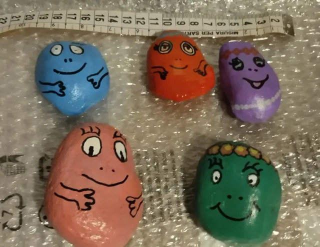 Set di 13 sassi decorati a mano con personaggi colorati. - Ogni sasso è unico e dipinto con cura. - Ideali per collezionismo o decorazione.