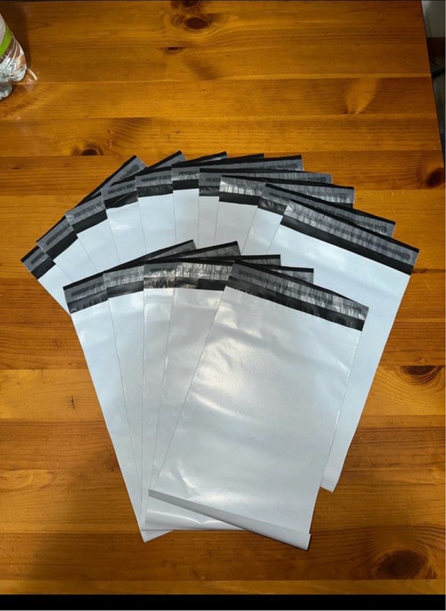 Set di 15 buste per spedizioni, perfette per inviare i tuoi pacchi in modo sicuro. - Dimensioni: 17x27 cm. - Chiusura autoadesiva.