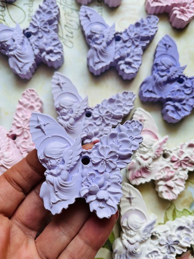 Dettagli del prodottofarfalle in gesso, perfette come bomboniere o decorazioni. Sono di colore rosa e lilla esattamente come in foto