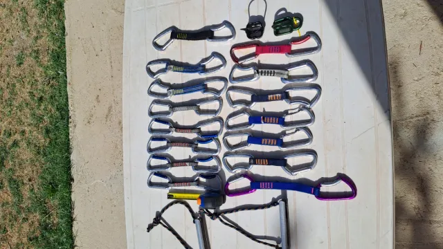 Dettagli del prodottoLotto composto da 15 rinvii per arrampicata su roccia, completi di moschettoni.