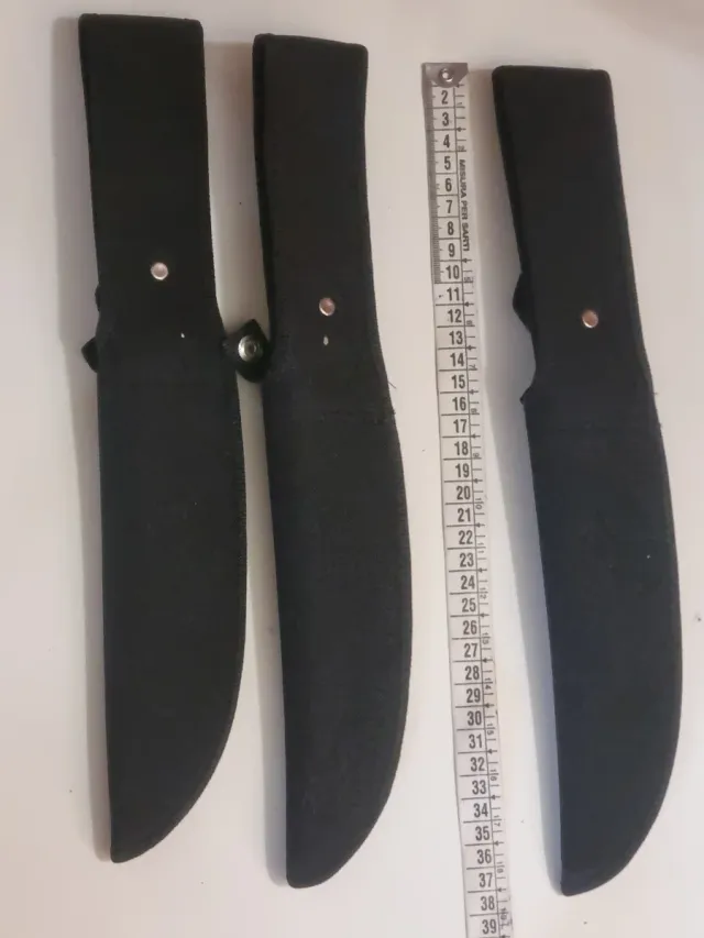 Set di foderi per coltelli. - 16 pezzi inclusi. - Chiusura con bottone a pressione.