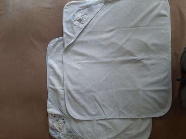 Dettagli del prodottoN.2 accappatoi di cotone celesti. Leggere macchie bianche su uno. Inoltre, copri carrozzino di cotone con ricamo. No difetti. Previsto omaggio a vostra scelta per ogni acquisto. Non posso spedire con Inpost!