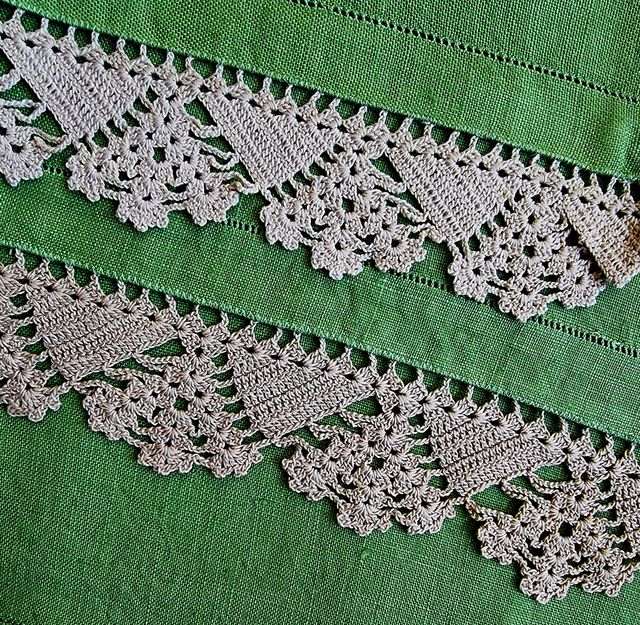 2 Antichi asciugamani Puro Lino Pizzo a Mano