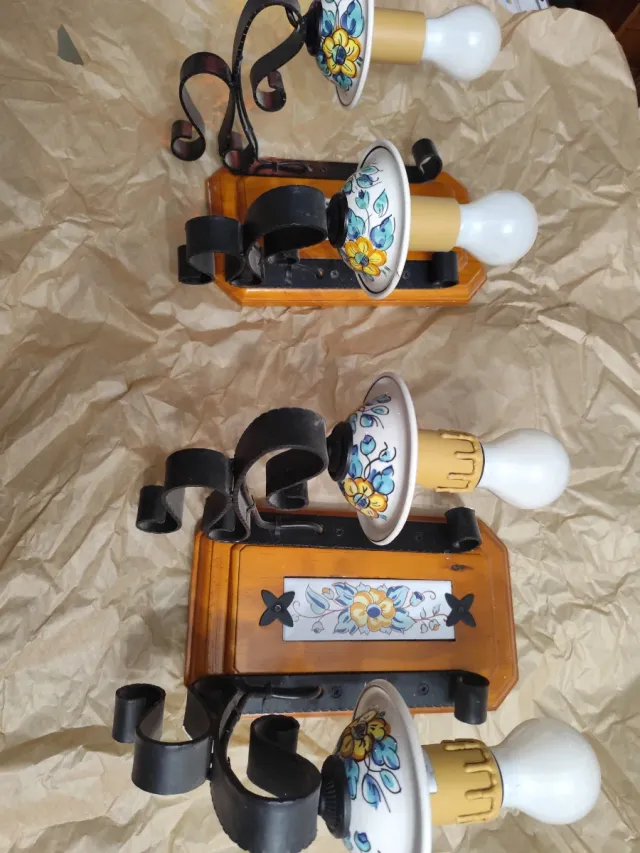 2 lampade da parete Lampada in ceramica e legno