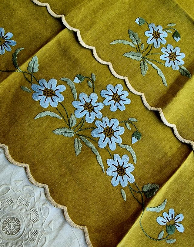 Dettagli del prodotto2 Asciugamani provenienti da corredo anni 70 in puro lino corposo con ricamo a mano a punto pieno. Orli smerlati e rifiniture con punto a giorno a mano. Asciugamano grande: 70 X 110 cm Ospite: 40 X 63 cm