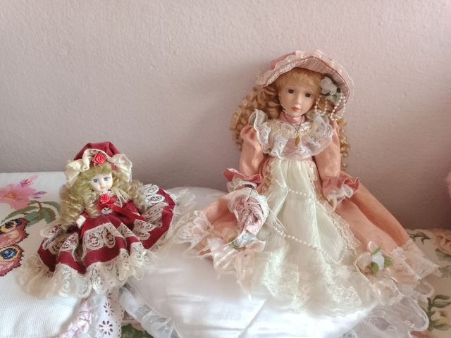 2 bambole in porcellana da collezione,altezza 18 cm e 40 cm