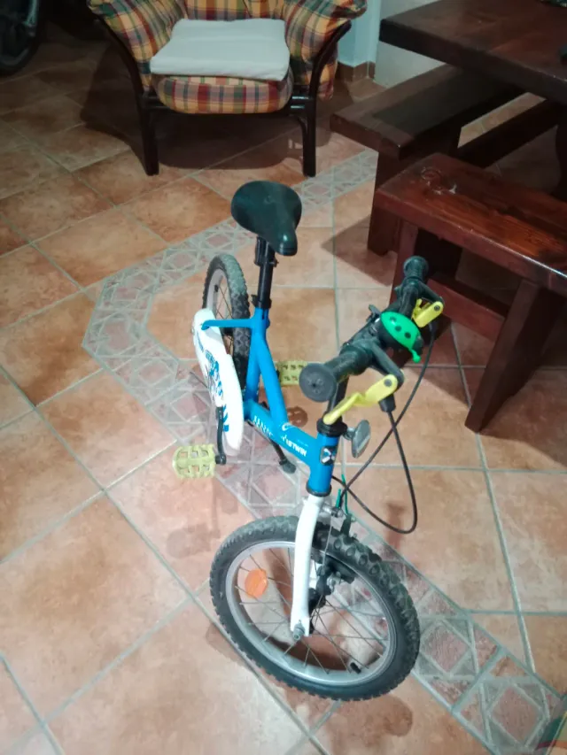 Vendo due biciclette per bambino, ideali per i più piccoli. - Colore blu e bianco. - Pedali gialli. - Manopole verdi.