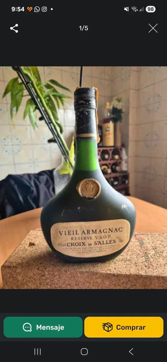 Dettagli del prodottoBottiglia di Vieil Armagnac Reserve V.S.O.P del marchio Croix de Salles. Cognac Paulet V.S.O.P. riserva - Capacità: 70cl. - Gradazione alcolica: 40% Vol. - Origine: Francia. La descrizione è stata tradotta automaticamente.