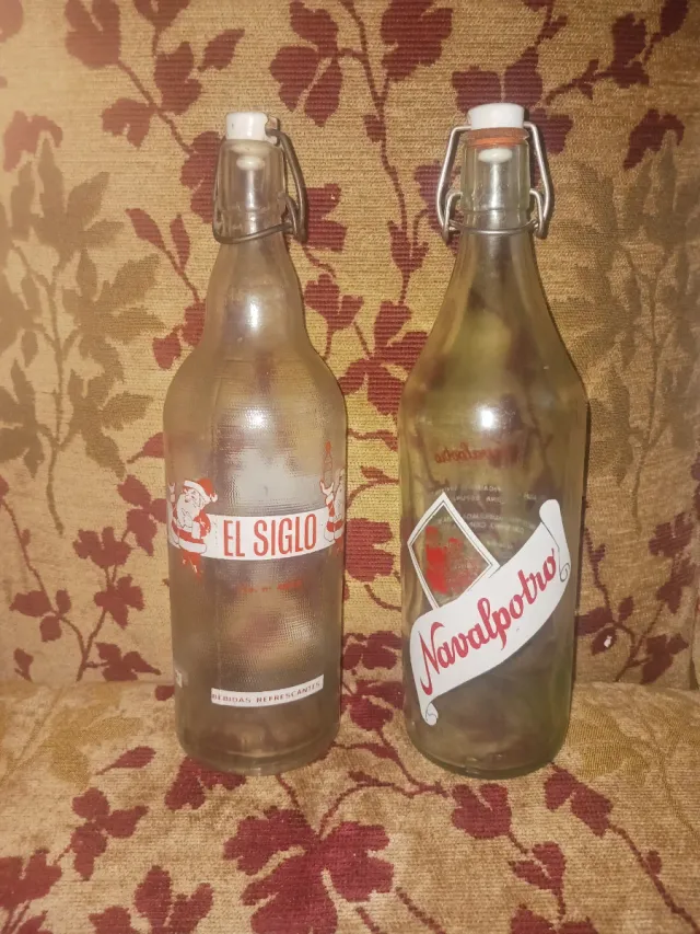 Dettagli del prodottoSet di due vecchie bottiglie di gassosa, perfette per collezionisti o decorazione. - Bottiglia El Siglo con etichetta di Babbo Natale. - Bottiglia Navalpotro con etichetta rossa e scudo. La descrizione è stata tradotta automaticamente.