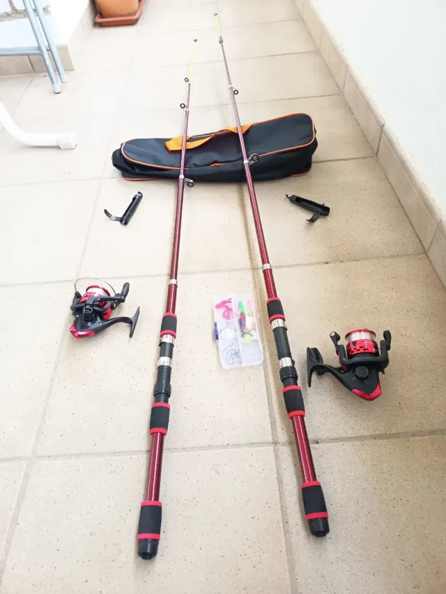 2 Canne da Pesca 1,80m + Mulinello e Accessori