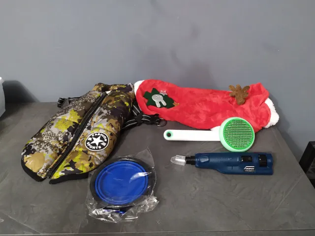 2 cappotti taglia L, ciotola, spazzola, lima