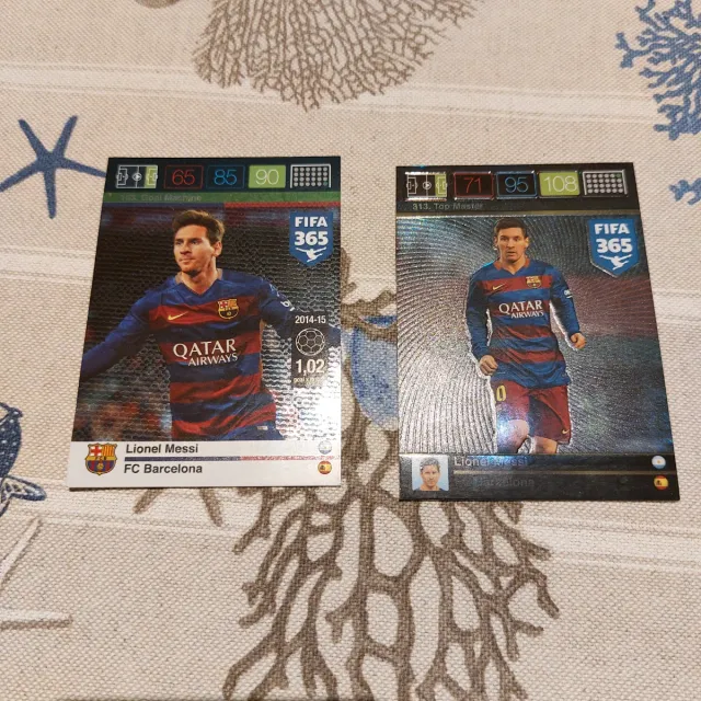 - Entrambe le carte raffigurano Lionel Messi con la maglia del FC Barcelona.