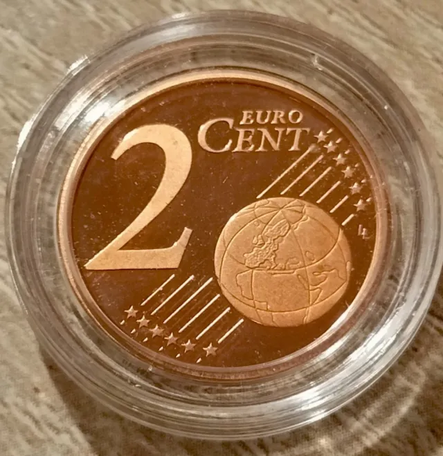 Moneta da 2 centesimi di Euro, edizione PROOF del 2011.