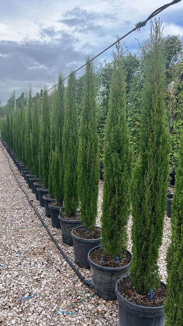 Dettagli del prodottoDos cipreses toscanos de la variedad Sempervirens Totem, perfectos para dar un toque de elegancia a tu jardín o terraza. Son plantas de crecimiento columnar y muy resistentes.