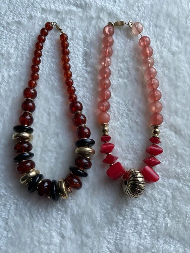 2 collane donna vintage marrone-rosse