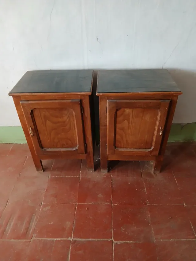 Dettagli del prodottoSet di due comodini in legno con un elegante top in vetro.