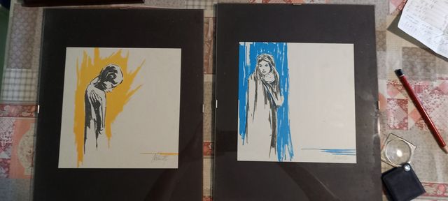 2 cornici/quadri donna con bambino+ uomo con capo chino cornice 35x28 immagine 20x20 come da foto