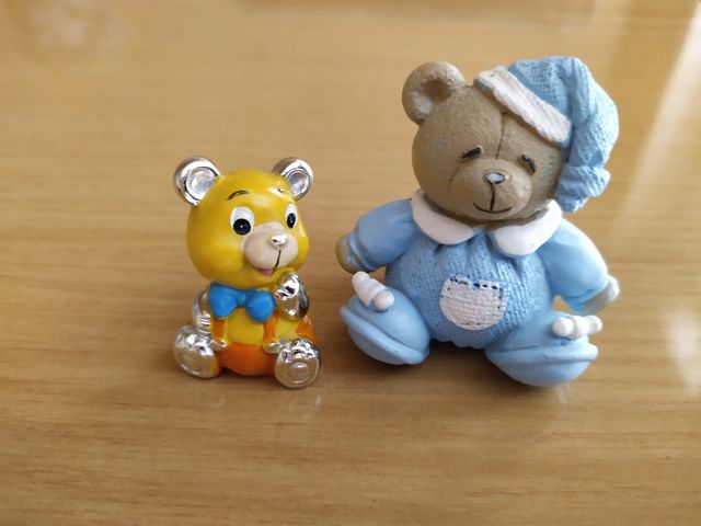 - Due statuette a forma di orsetto, una gialla e una azzurra.
